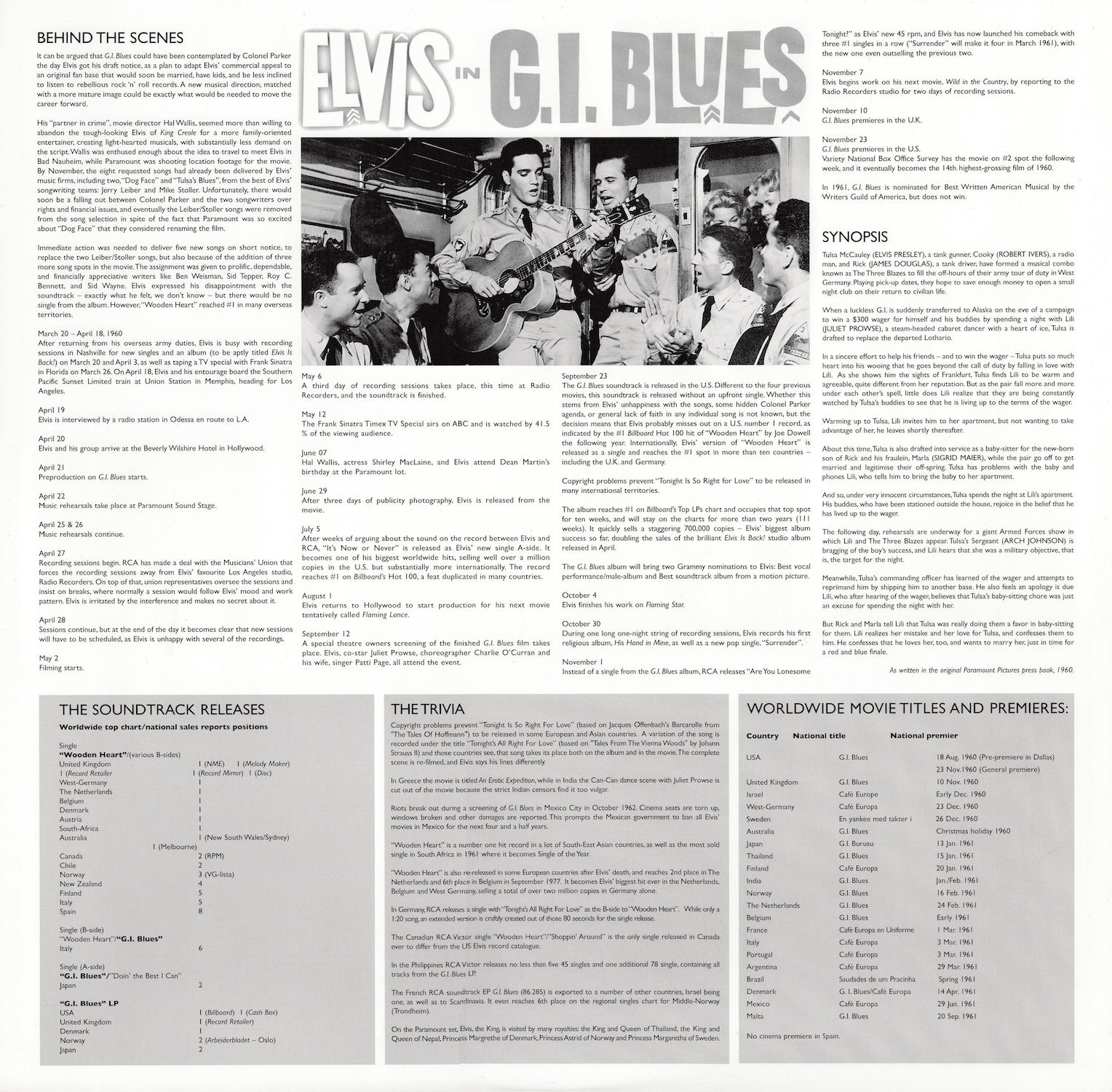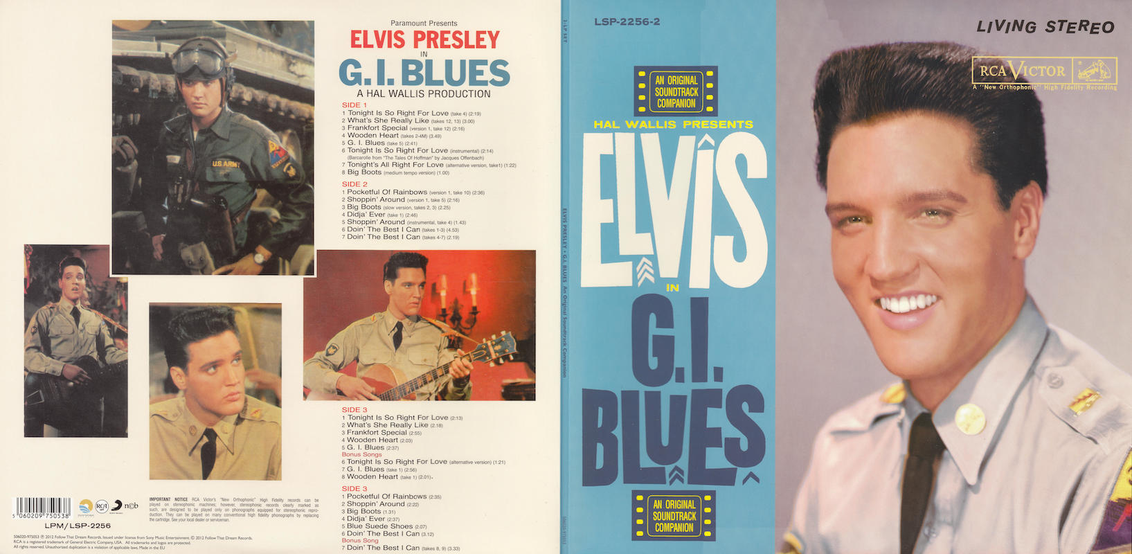 G.I. Blues was first released by Follow That Dream as a 7 inch extended soundtrack in July 2012 (see here), and this vinyl edition is a compilation of tracks taken from that original release.