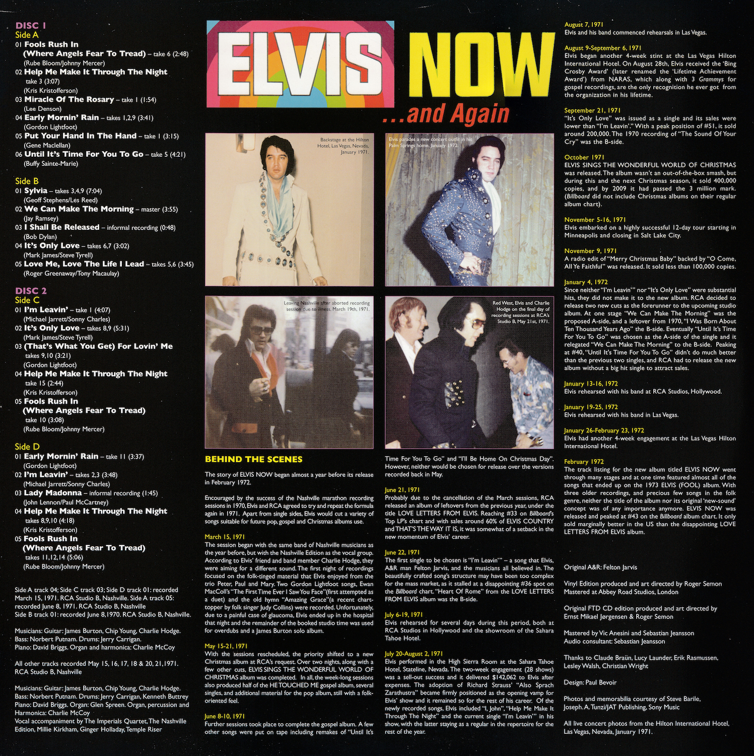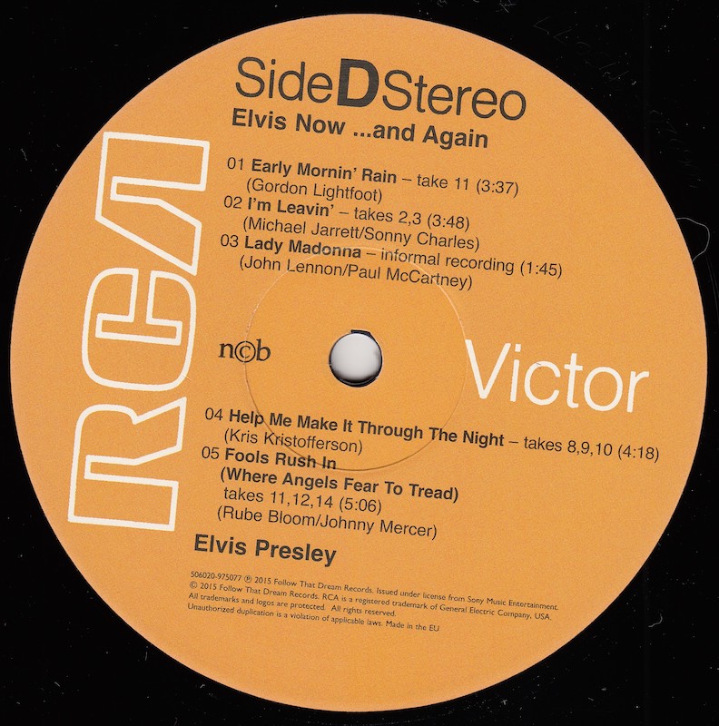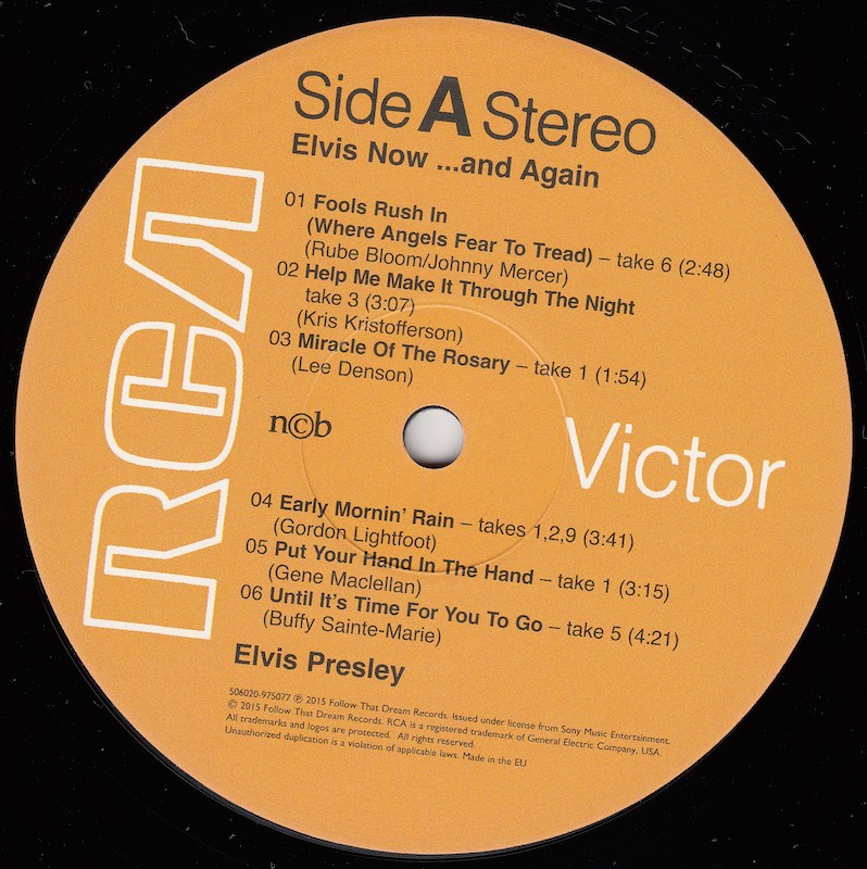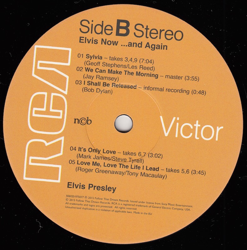 Elvis Now was first released by Follow That Dream as a 7 inch classic album in April 2010 (see here), and this vinyl edition is a compilation of tracks taken from that original release, and other FTD releases.
