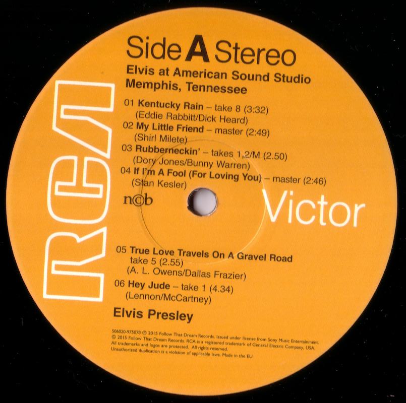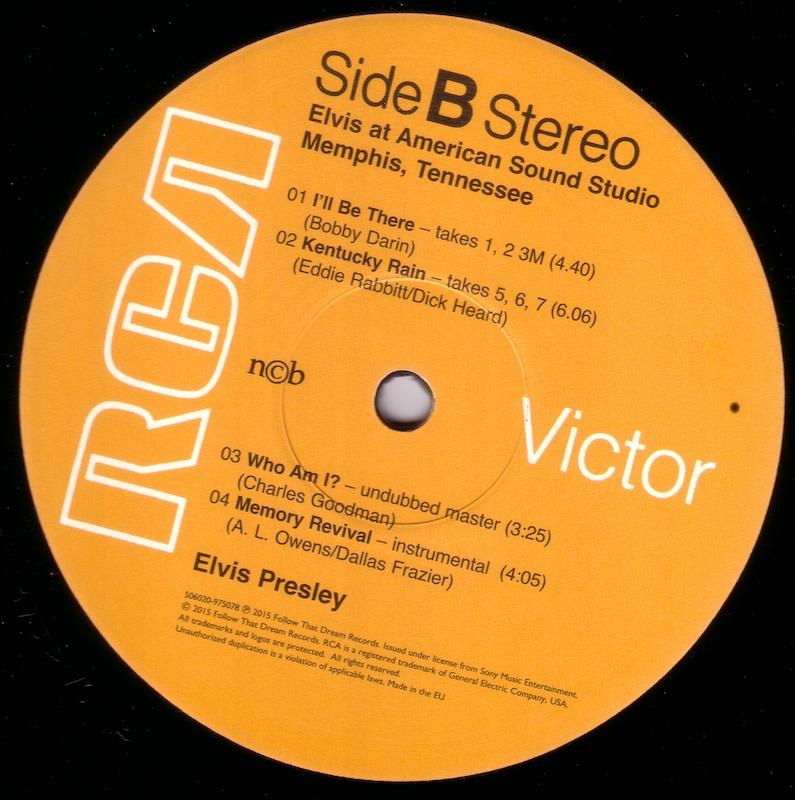 From Elvis At American Sound Studio was first released by Follow That Dream as a 7 inch classic album in December 2013 (see here), and this vinyl edition is a compilation of tracks taken from that original release.