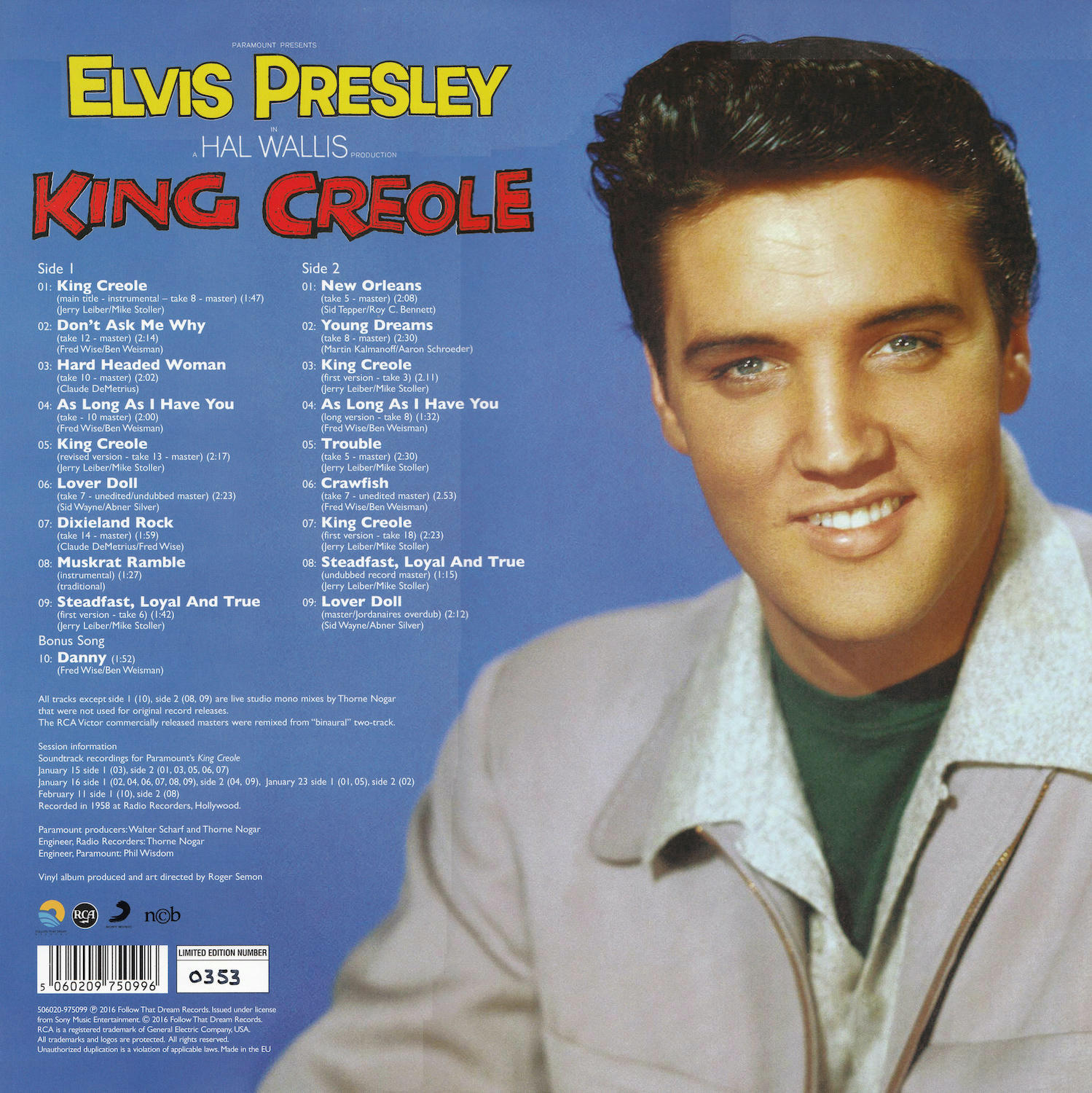 King Creole was first released by Follow That Dream as a 7 inch extended soundtrack in May 2015 (see here), and this vinyl edition is a compilation of tracks taken from that original release.