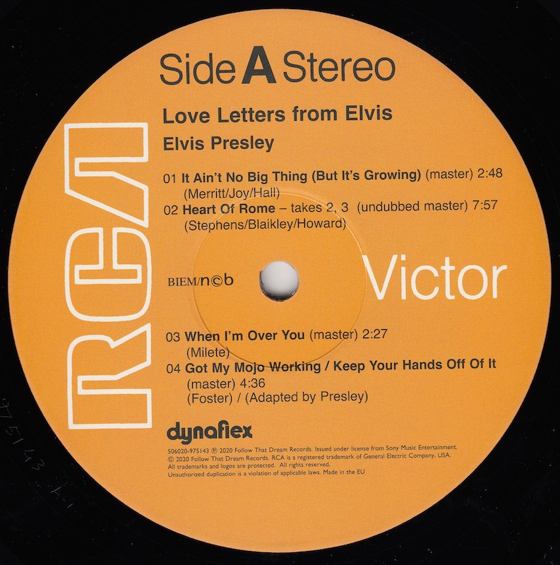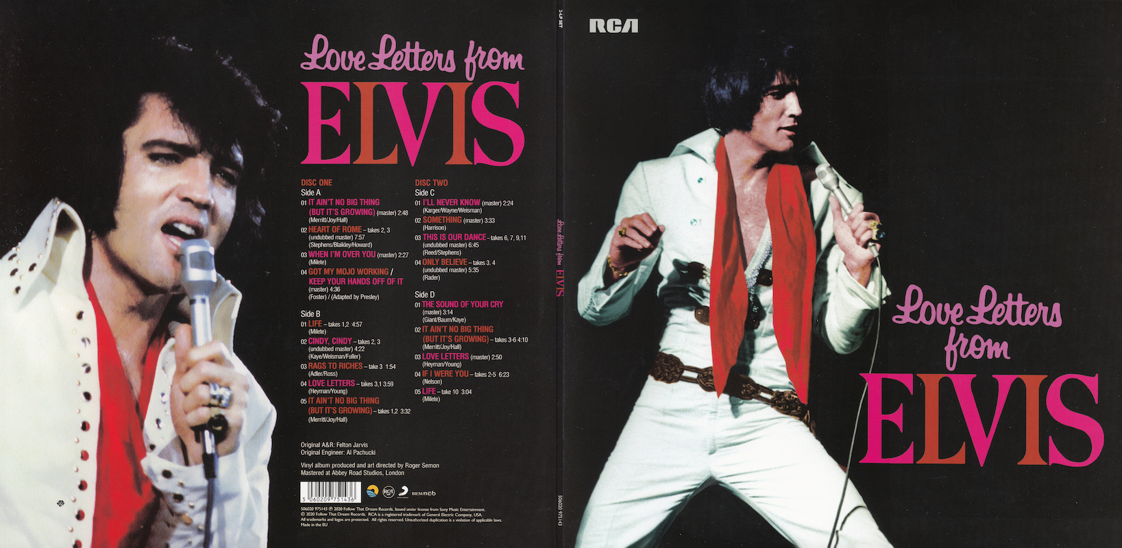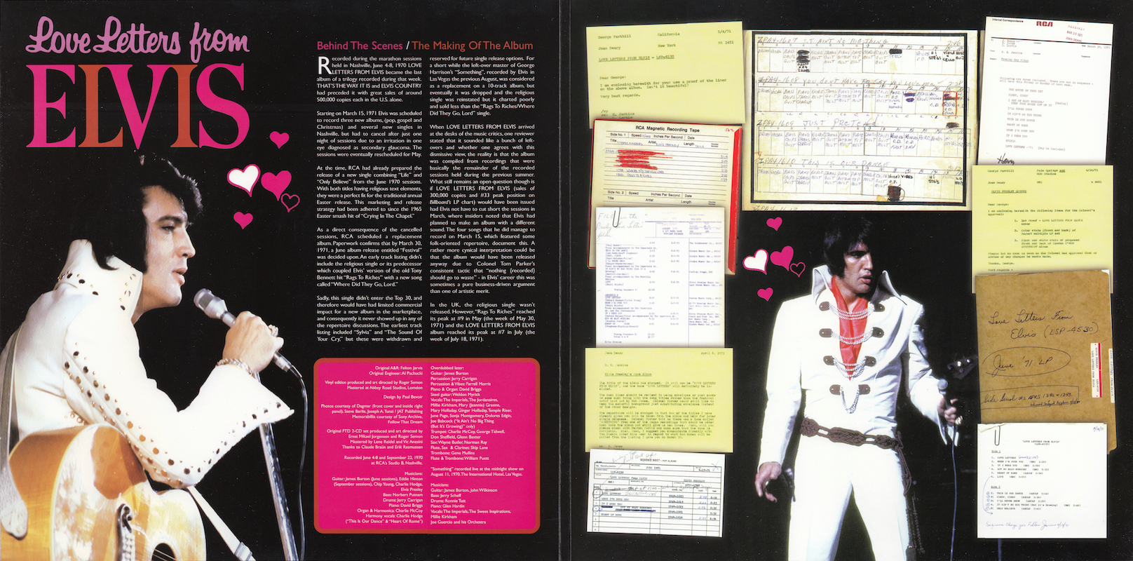 Love Letters From Elvis was first released by Follow That Dream as a 7 inch classic album in August 2008 (see here), and it was this set that all of the outtakes on this vinyl edition are taken from.