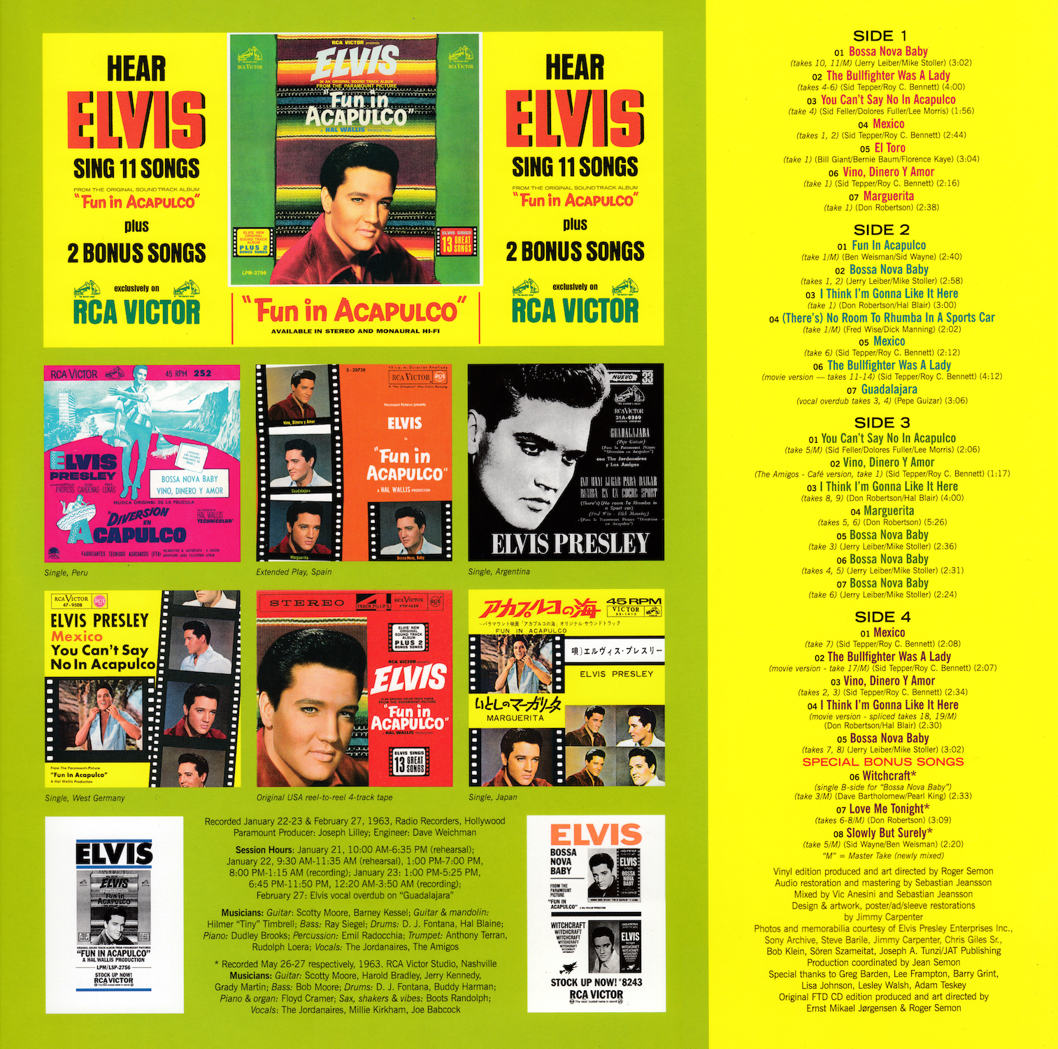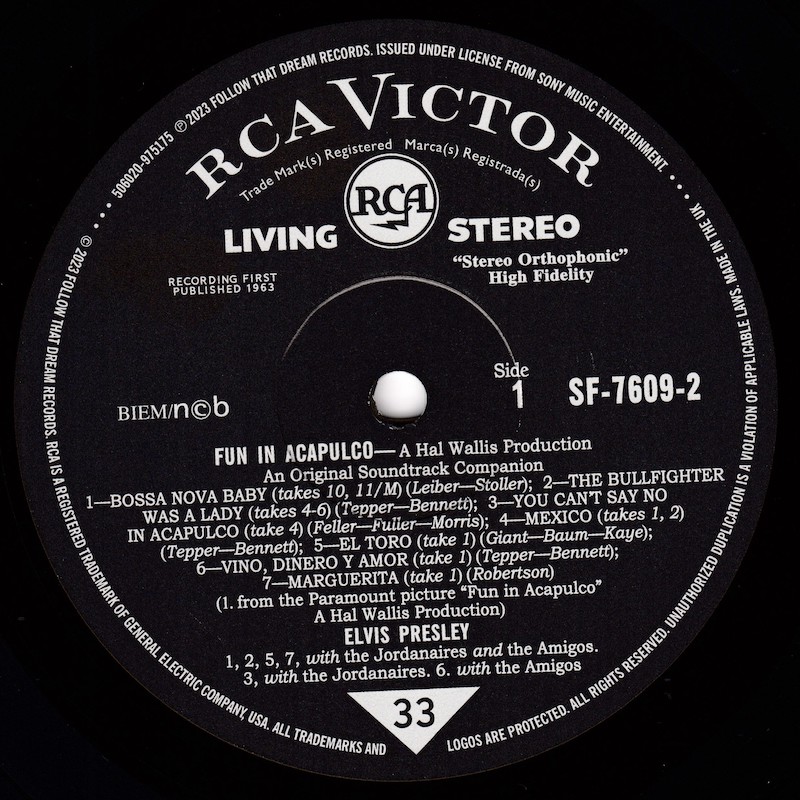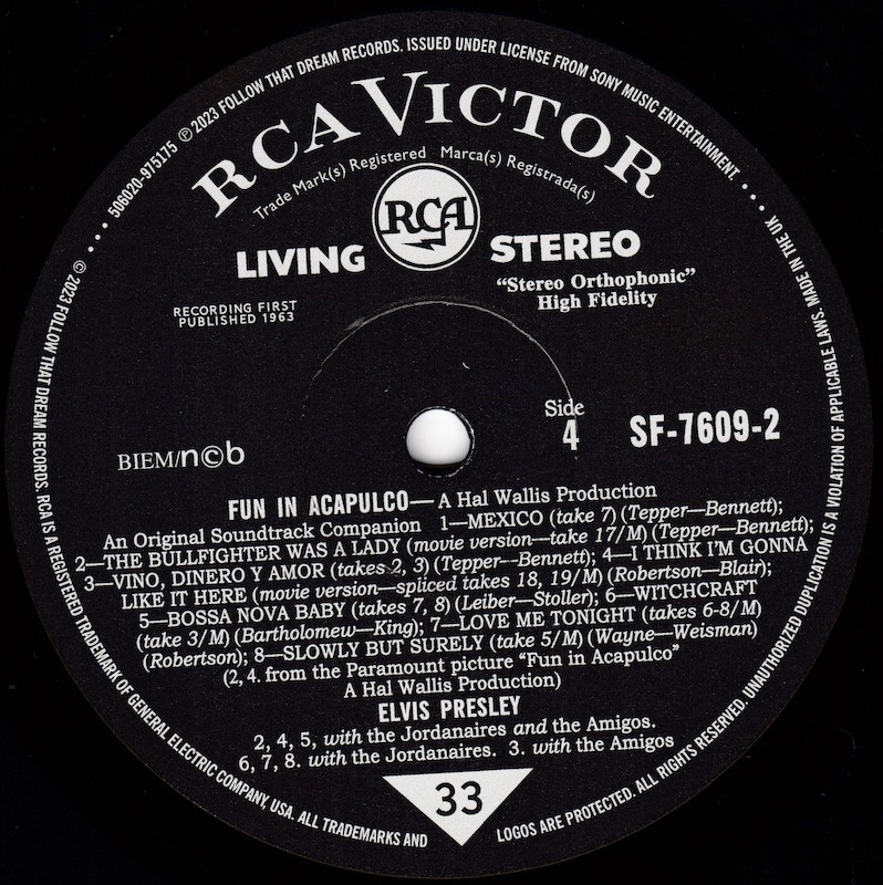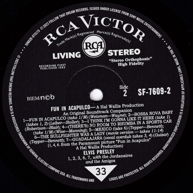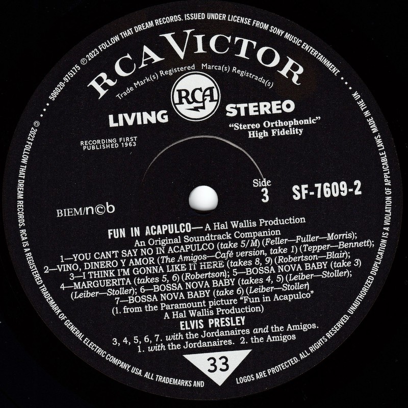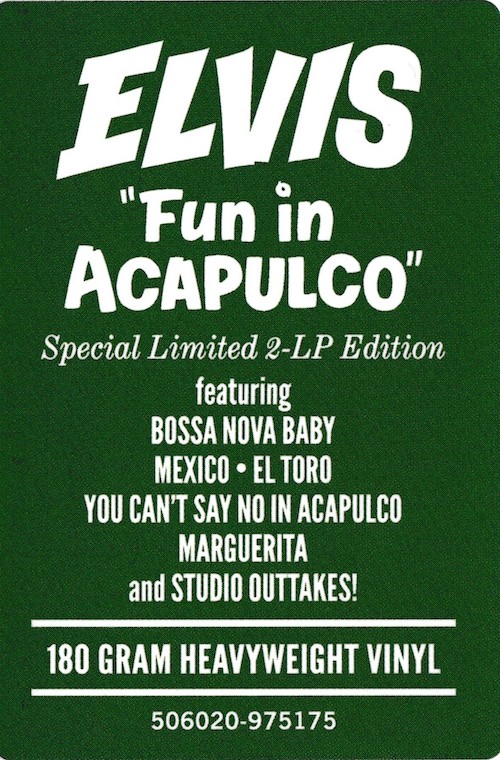 The complete sessions were released in March 2019 on FTD's The Fun In Acapulco Sessions (see here), and it was this set that all of the outtakes on this vinyl edition are taken from, apart from the "Special Bonus Songs", which are taken from FTD's Devil In Disguise - The "Lost Album" Sessions (see here).