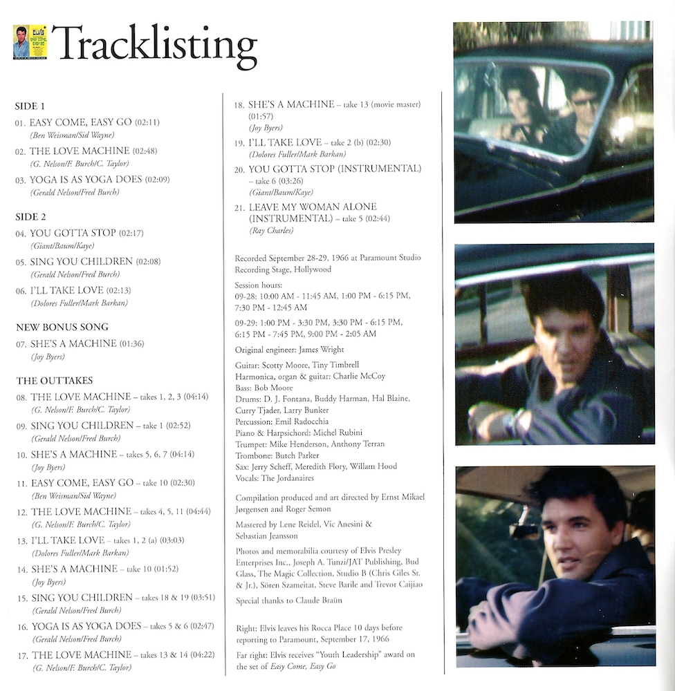 What is listed as being take 6 of 'You Gotta Stop (instrumental)' on the cover is actually take 1 (GOVC-1), and is listed correctly in the "In And Outtakes" section of the boolket.