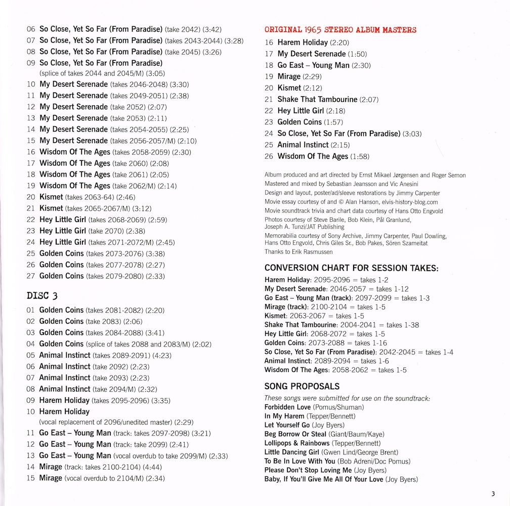 | Deluxe Sessions Package, with three CDs containing the recording sessions for the MGM picture Harum Scarum. |
