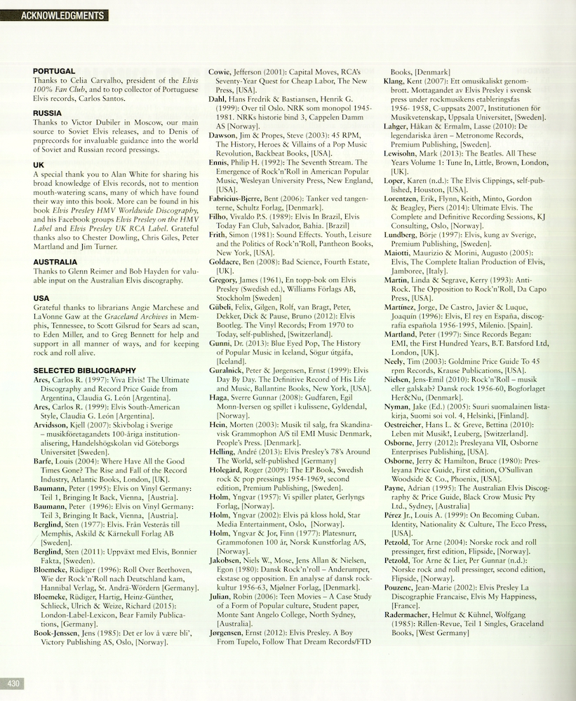 Over 432 pages, this comprehensive story of Elvis' record releases in all the European territories, beginning in 1956, delivers all sorts of wonderful (and sometimes weird!) information, offering all kinds of facts, figures and knowledgeable insights. The attention to detail is breathtaking, with the autors really knowing their subject inside out.